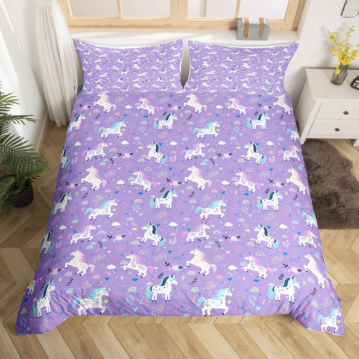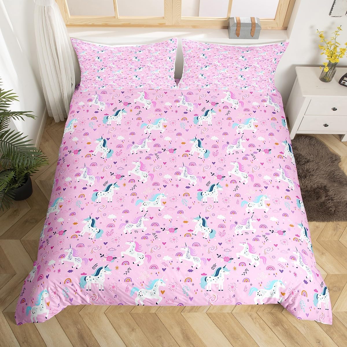 Package Include: Duvet Cover and Pillowcase. High quality Duvet Cover 3D Pattern Bedding Set, simply decorating your rooms any time you want, bringing you fresh feel for year round use. Size Information: Twin size 2pcs duvet cover set: 1 Duvet Cover 68" x 90", 1 pillowcase 20" x 30". Without Comforter Full size 3pcs duvet cover set: 1 Duvet Cover 80" x 90", 2 pillowcase 20" x 30". Without Comforter Queen size 3pcs duvet cover set: 1 Duvet Cover 90" x 90", 2 pillowcase 20" x 30". Without Comforter King size 3pcs duvet cover set: 1 Duvet Cover 104" x 90", 2 pillowcase 20" x 36". Without Comforter Personalize your bedroom: Beautiful design and colorful print, makes your bedroom unique and brings you a wonderful dream. Washing instructions: Machine wash separately in cold water,hang dry, do not bleach. Occasion: The cute soft duvet cover bedding sets designed for Children ,Adult, Men, Women, Teens. This duvet cover set is also suitable for full seasons, Spring, Summer, Autumn and Winter. More Decor: Search our store to get more christmas theme, new year theme, autumn fall theme, any holiday theme, modern abstract, farmhouse rustic theme, simple pattern, garden flowers etc. home decoration, Warm Tips: 1. Please allow 1-3cm error due to manual measurement. 2. Actual color may vary from the color on your screen due to monitor color restrictions.